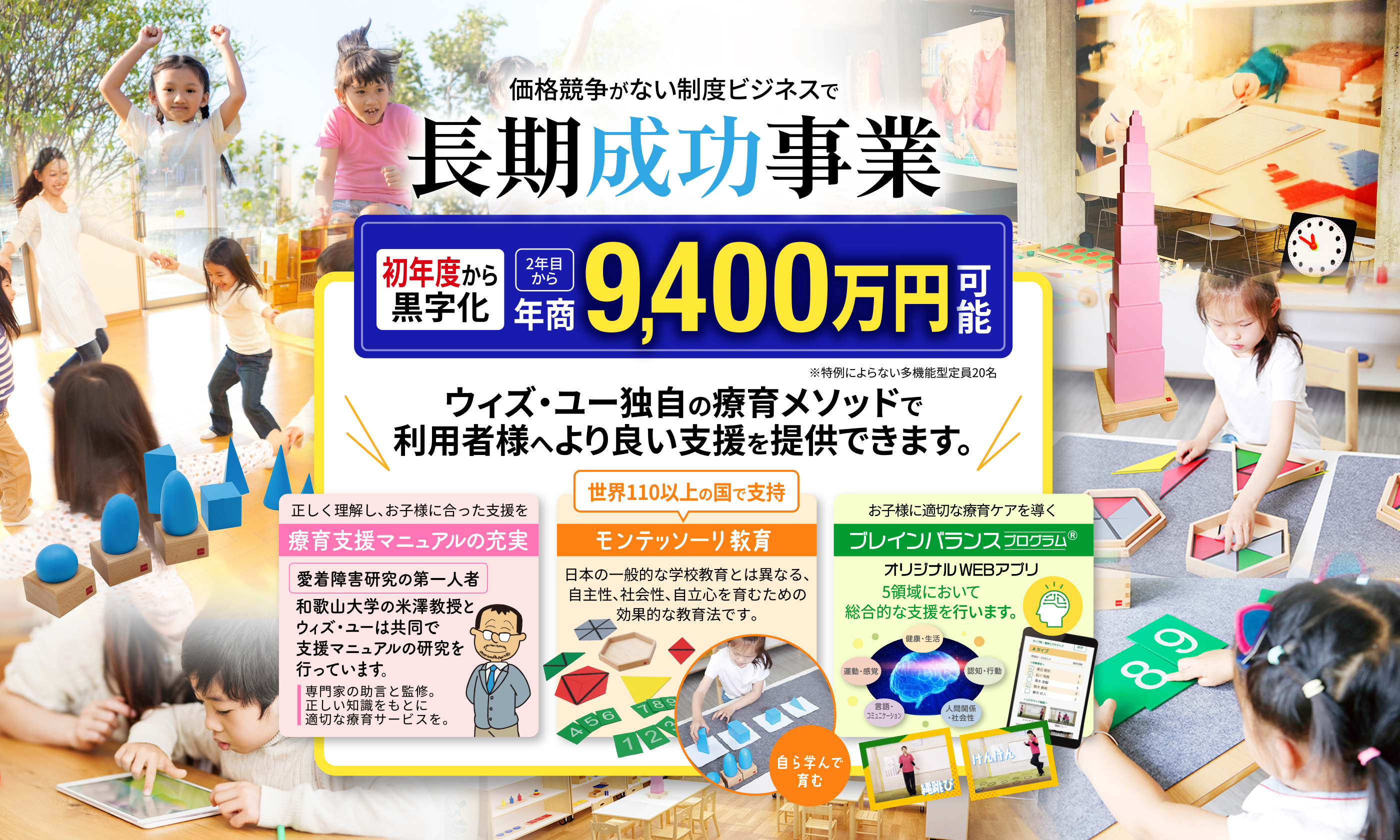 スタッフの教育をする際、まず、教育する側の人間を雇用する必要があります。そこそこ優秀な人を採用しようとすると、年収500万円は下りません。加盟金・開業準備金だけでも十分にペイできる金額ではないでしょうか。ウィズ・ユーでは特にスタッフ教育に特化しております。和歌山大学の米澤教授監修の元、この道30年の研究の成果がウィズ・ユーにはあります!